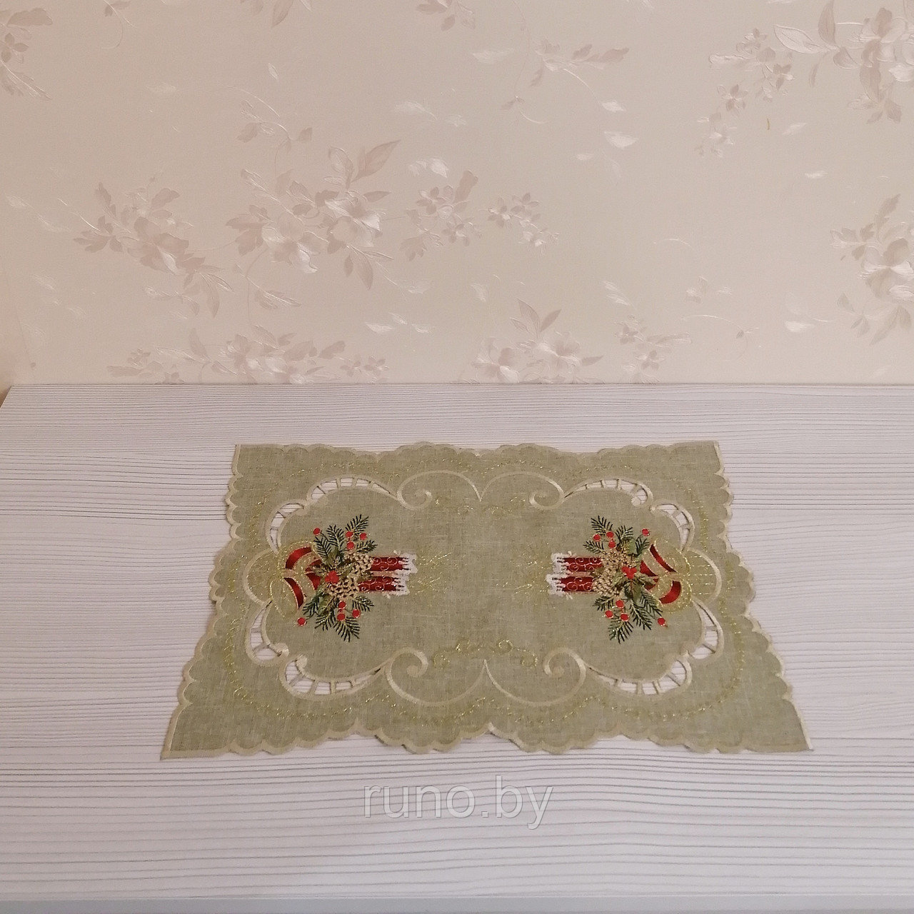 На скатерть салфетка новогодняя льняная вышитая декоративная с вышивкой "Новый Год" 30*45см
